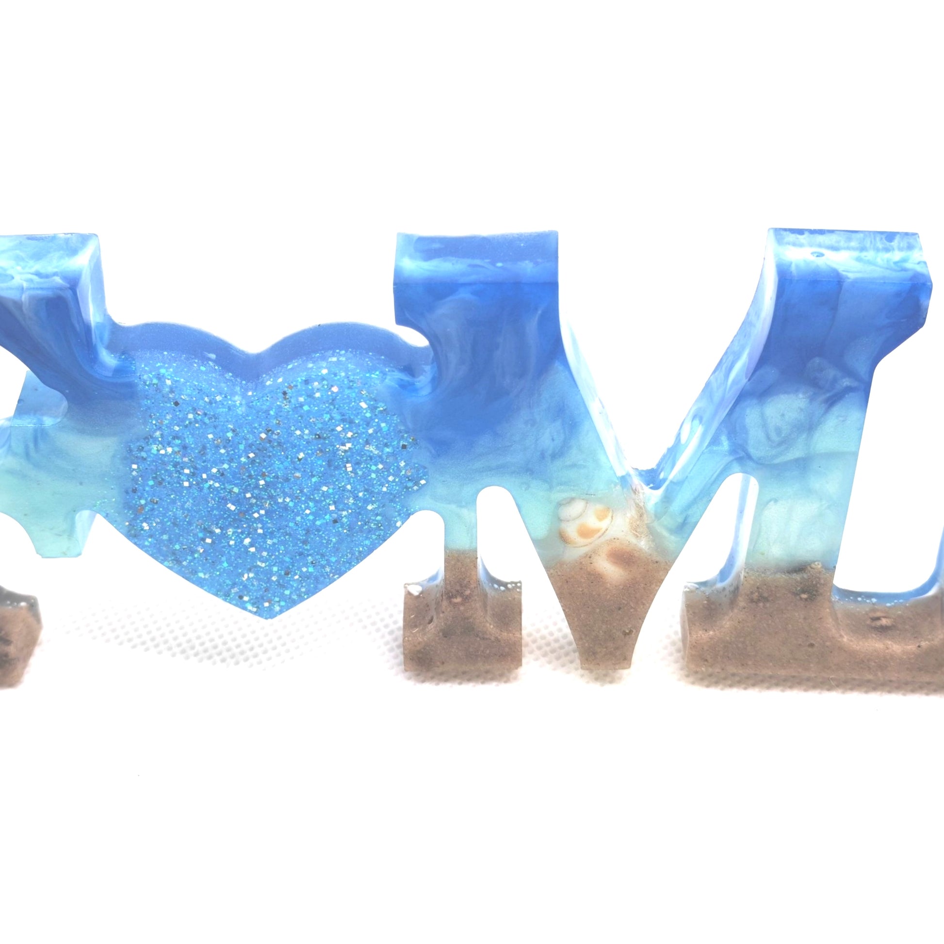 The Family Sign features a resin heart infused with sparkling glitter with colours that captures the essence of the sea. Making it a meaningful decorative piece for any home, durable and eye-catching.